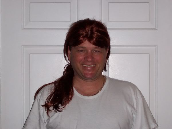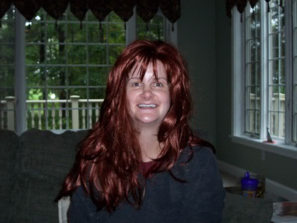 Here is my dad's wife wearing the wig...