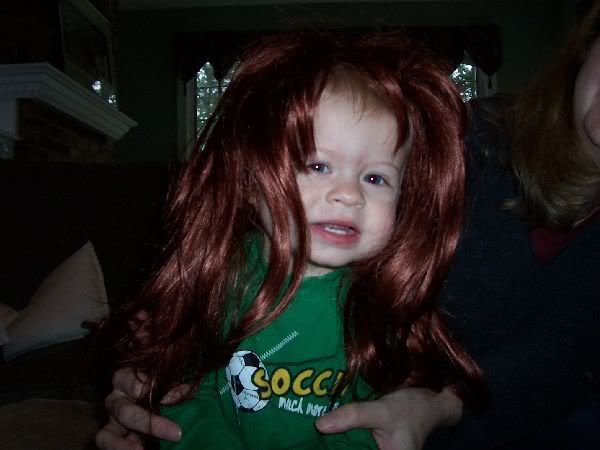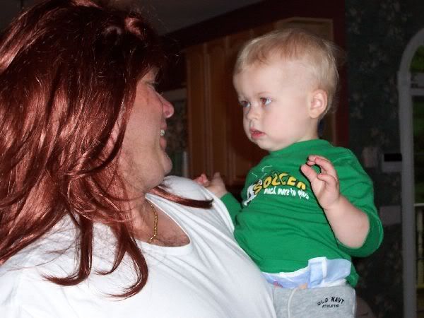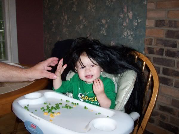 I absolutely LOVE Mikey's reaction when my dad picked him up while wearing the wig...I titled this picture "mikeywtfdad"...haha My dad was going, "Daddy's wearing a hat!" I don't think Mikey fell for it.