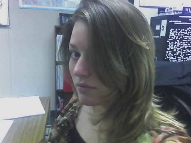 Well, if you read my blogs, you know I cut my own hair yesterday. Here is a side view of my lovely layers (the blond is almost gone!)