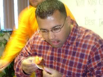 Here is my boss, Jay, tasting my other boss, Sarah's cupcake...before and after: