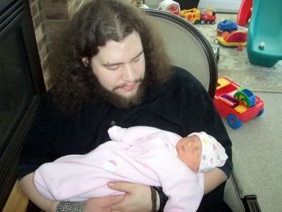 Also, when my stepmother was holding the baby, he walked over and pulled on her arm saying, "All done. All done. All done." He wants nothing to do with my stepmother or the baby. I'm sure he'll adjust. Here are a couple of cute pictures of them today.
