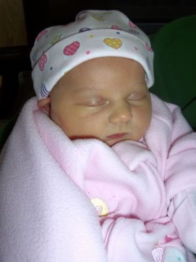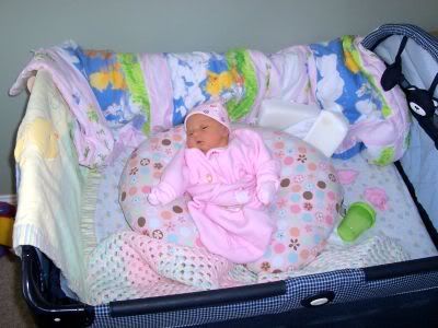 Also, when my stepmother was holding the baby, he walked over and pulled on her arm saying, "All done. All done. All done." He wants nothing to do with my stepmother or the baby. I'm sure he'll adjust. Here are a couple of cute pictures of them today.When we first got there, Julia was chillin: