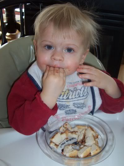 While we were holding Julia, Mikey was eating pb&j...and his HAND