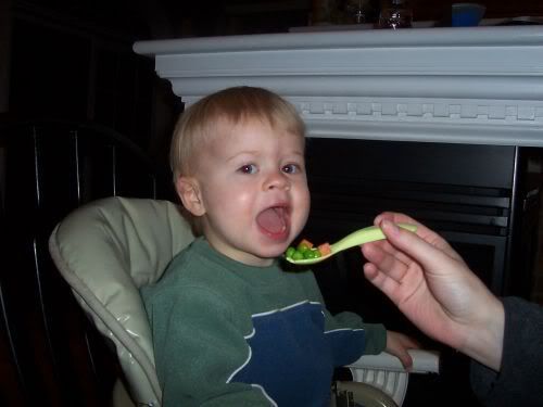 Stopped for a snack of peas and carrots: