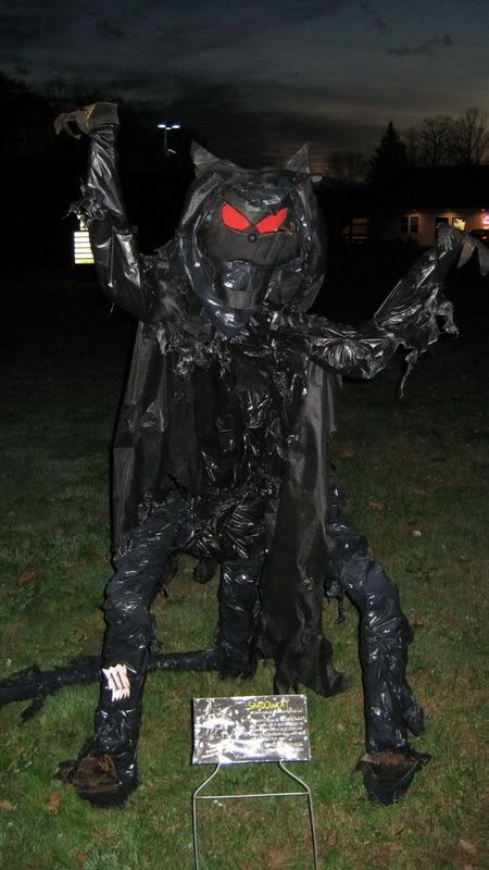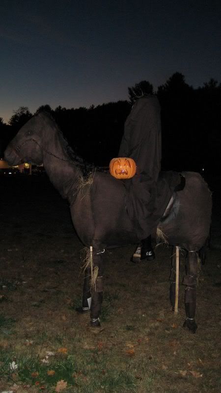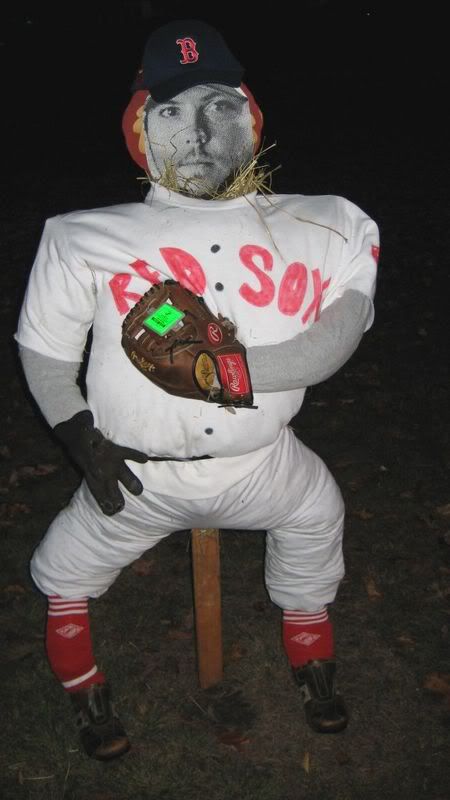 I happen to have the pleasure of driving through not only Warren, but also West Warren on my way to and from work M-F. During this month, I've been seeing more and more "scarecrows" popping up on the town commons. It wasn't until tonight, on my way home from work, that I noticed the newest addition and busted out laughing. The legs are funny, but it's the face that kills me.