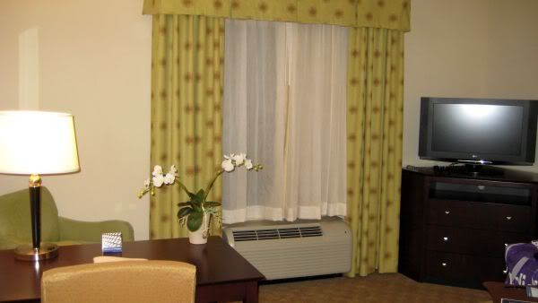 Tomorrow, we really need to kick the mileage up a notch. Here we are in Knoxville, TN at the Hampton Inn which feels like a luxury hotel! The room is gorgeous, there is a sweet LG television and it's cleancleanclean! The decor is an improvement from last night, however, it still leaves something to be desired: