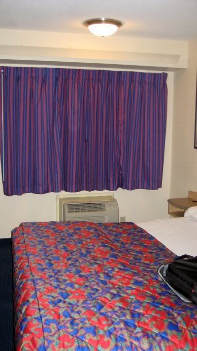 We are here at the Red Roof Inn of Wilkes-Barre, PA...which was recently remodeled and looks rather clean (though nothing changes the fact that we will be sleeping in a bed that countless others have...with all their sweat and drool and other assorted nastiness). And hey - for $65, I'm not complaining! But check the decor: